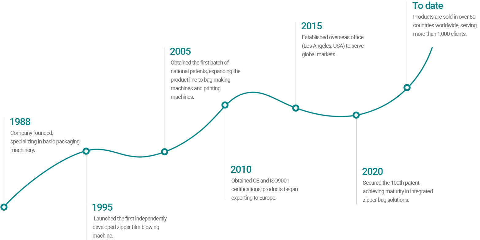 Zhejiang XINXIN Packaging Machinery Co., Ltd., fundada en 1988, es una empresa integral que integra I+D tecnológica, fabricación y comercio global. Con un firme compromiso con la innovación, contamos con 118 patentes —incluyendo 16 patentes de invención—, las cuales constituyen el fundamento de nuestra pericia técnica y de la fiabilidad de nuestros productos.