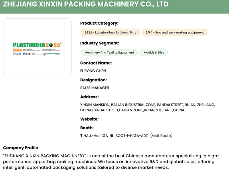 Zhejiang Xinxin Packaging Machinery Co., Ltd. will participate in the upcoming India International Packaging Industry Exhibition to showcase its latest technologies and solutions in bag-making equipment to customers in India and neighboring countries.