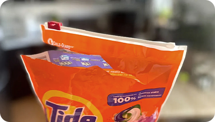 While standard bags are for dry goods, specially designed and laminated zipper bags can be used for liquid products like shampoos or sauces.